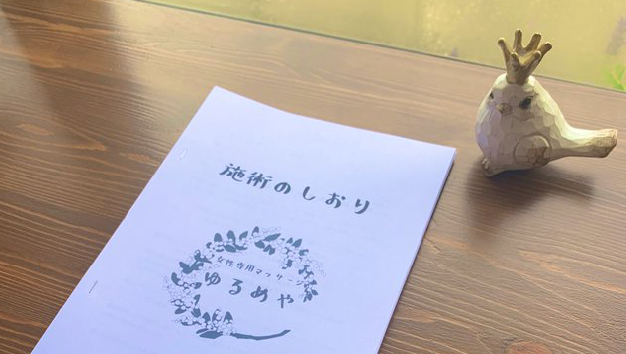 初めてのお客様には施術のしおりをお渡ししますのでお家で是非ご覧下さい。