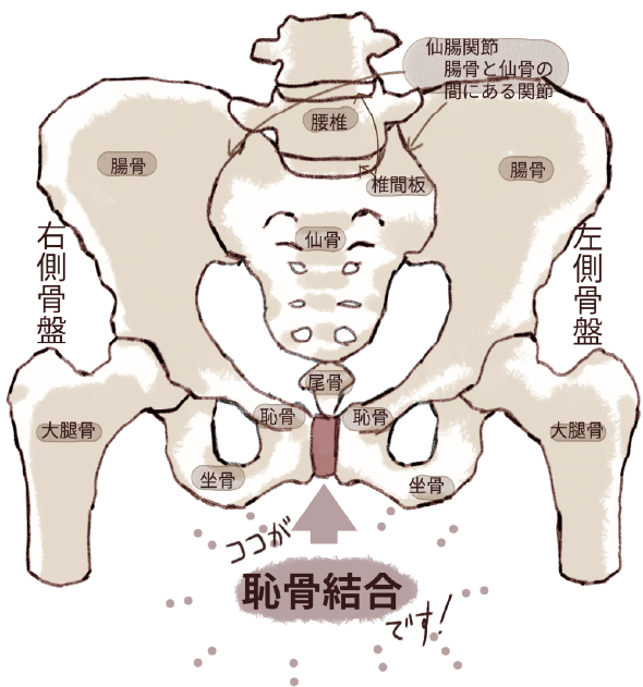 恥骨結合とは左右の骨盤を全面でつなぐクッション性のある特殊な軟骨なんです。